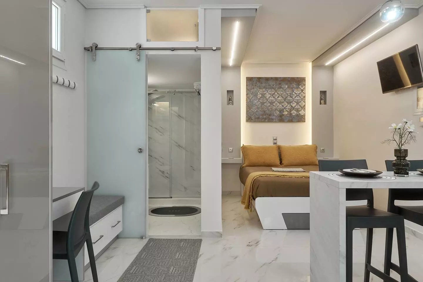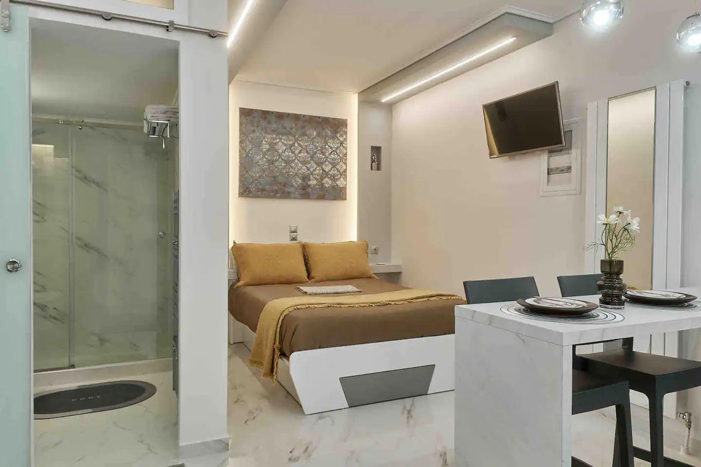 Stay at Modern Studio for Two, a spacious and modern 28 sqm studio in the heart of Mytilene. Ideal for couples, solo travelers, and digital nomads, this studio offers comfort, privacy, and a quiet home-office-friendly environment, just minutes from the city’s main streets.